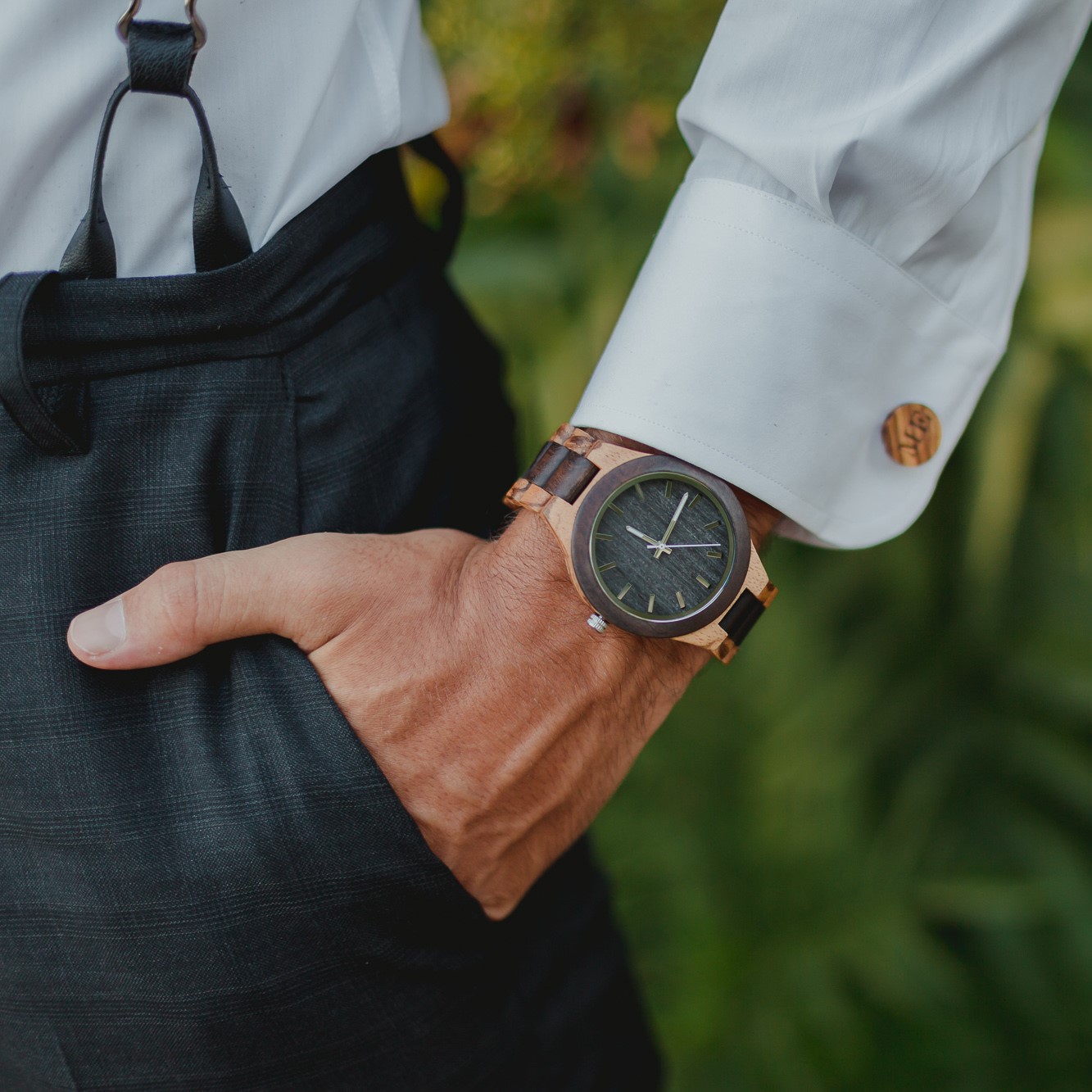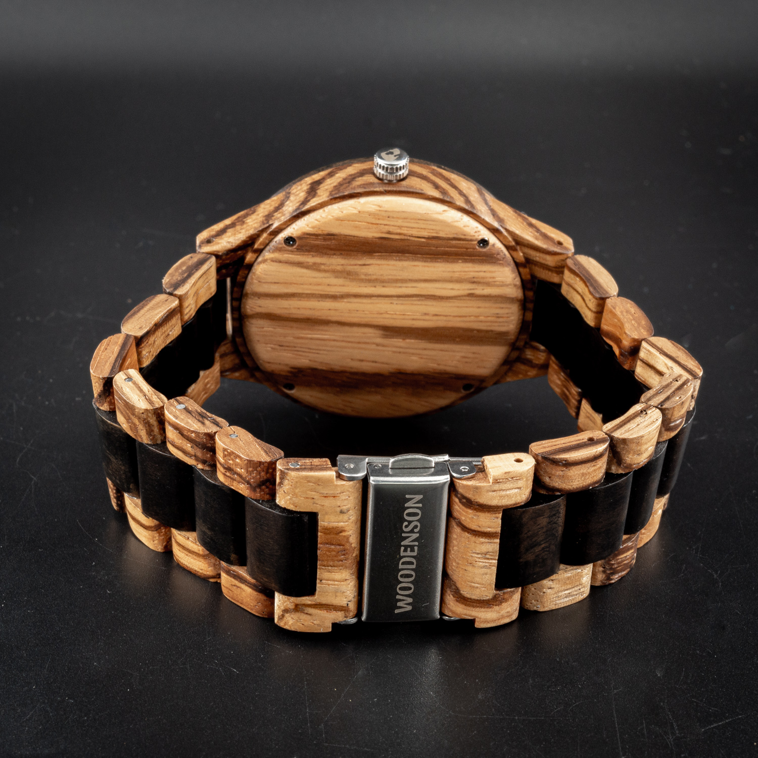 Kumasi es un reloj elegante, fabricado en Zebrano y Chacate negro. La mezcla y el contraste de colores de este reloj es armónica y muy bella y su tacto nos lleva a continentes lejanos y a ciudades con jardines imposibles.
