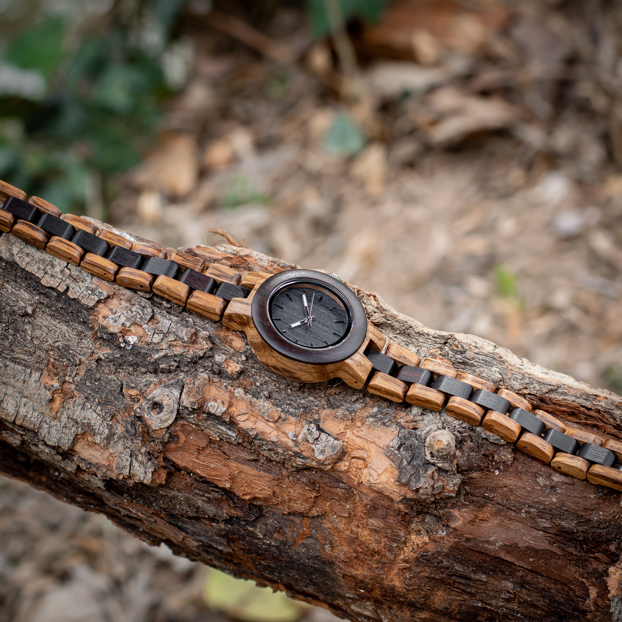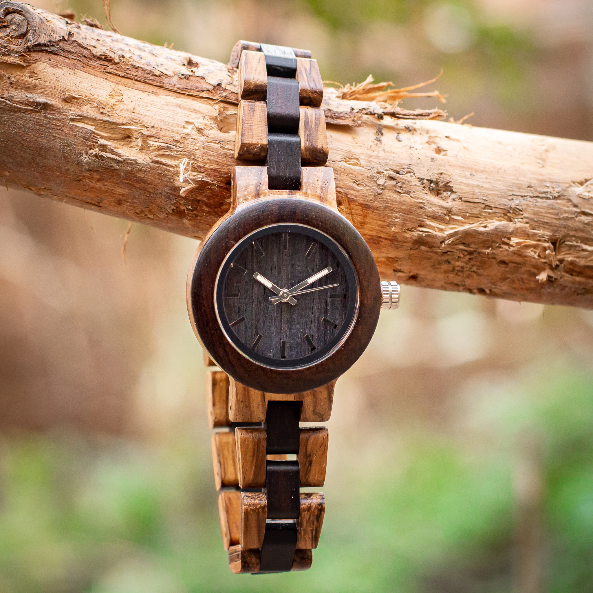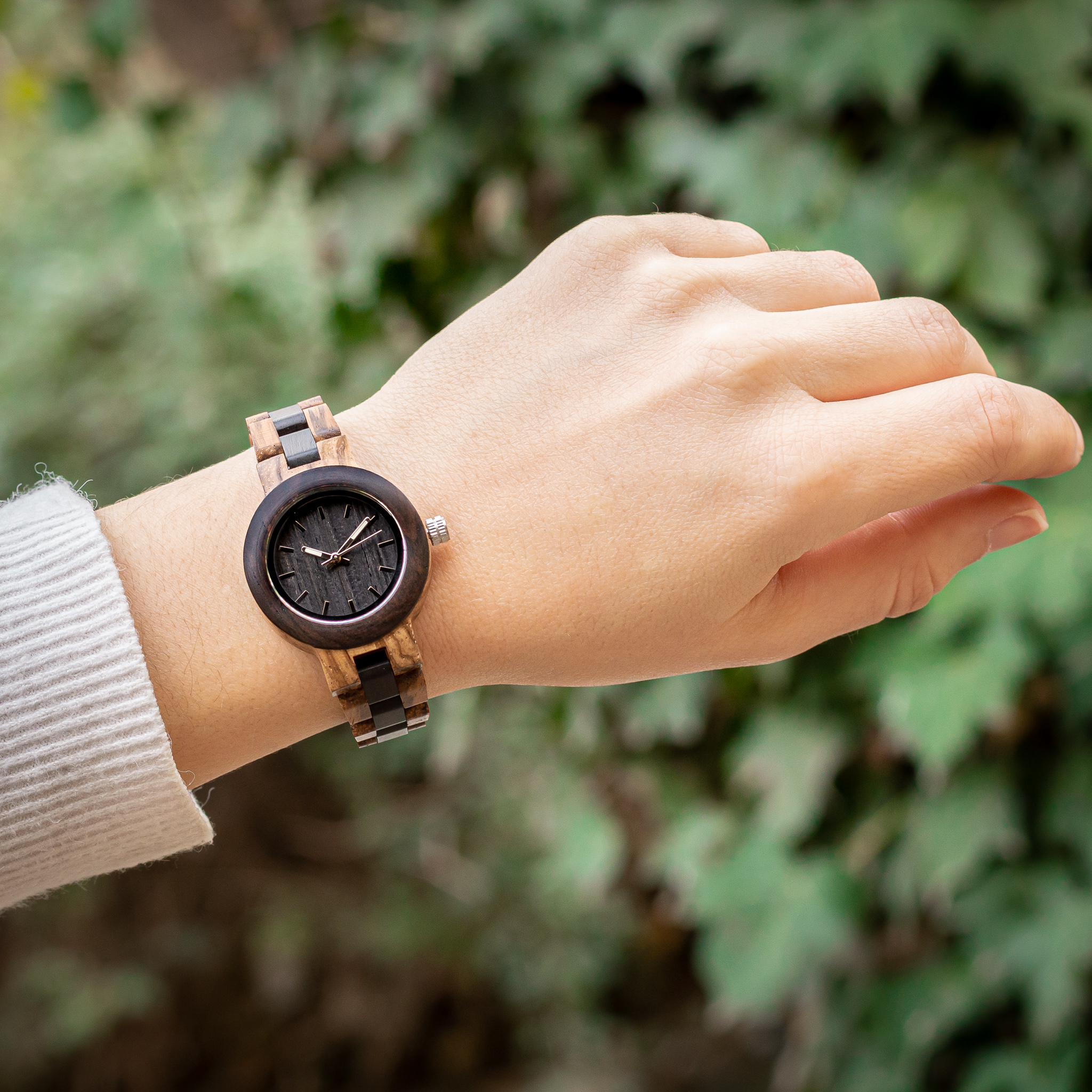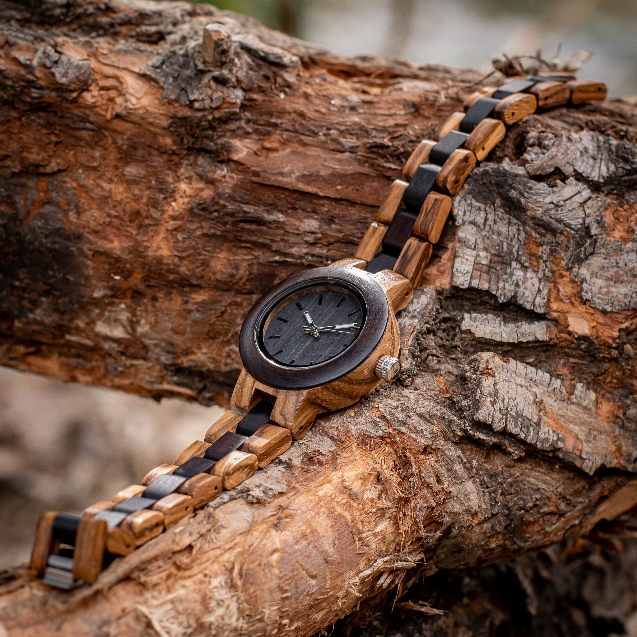 Kumasi es un reloj elegante, que recuerda al ébano y a los tonos del café. La mezcla de colores de este reloj es armónica y muy bella y su tacto nos lleva a continentes lejanos y a ciudades con jardines imposibles.